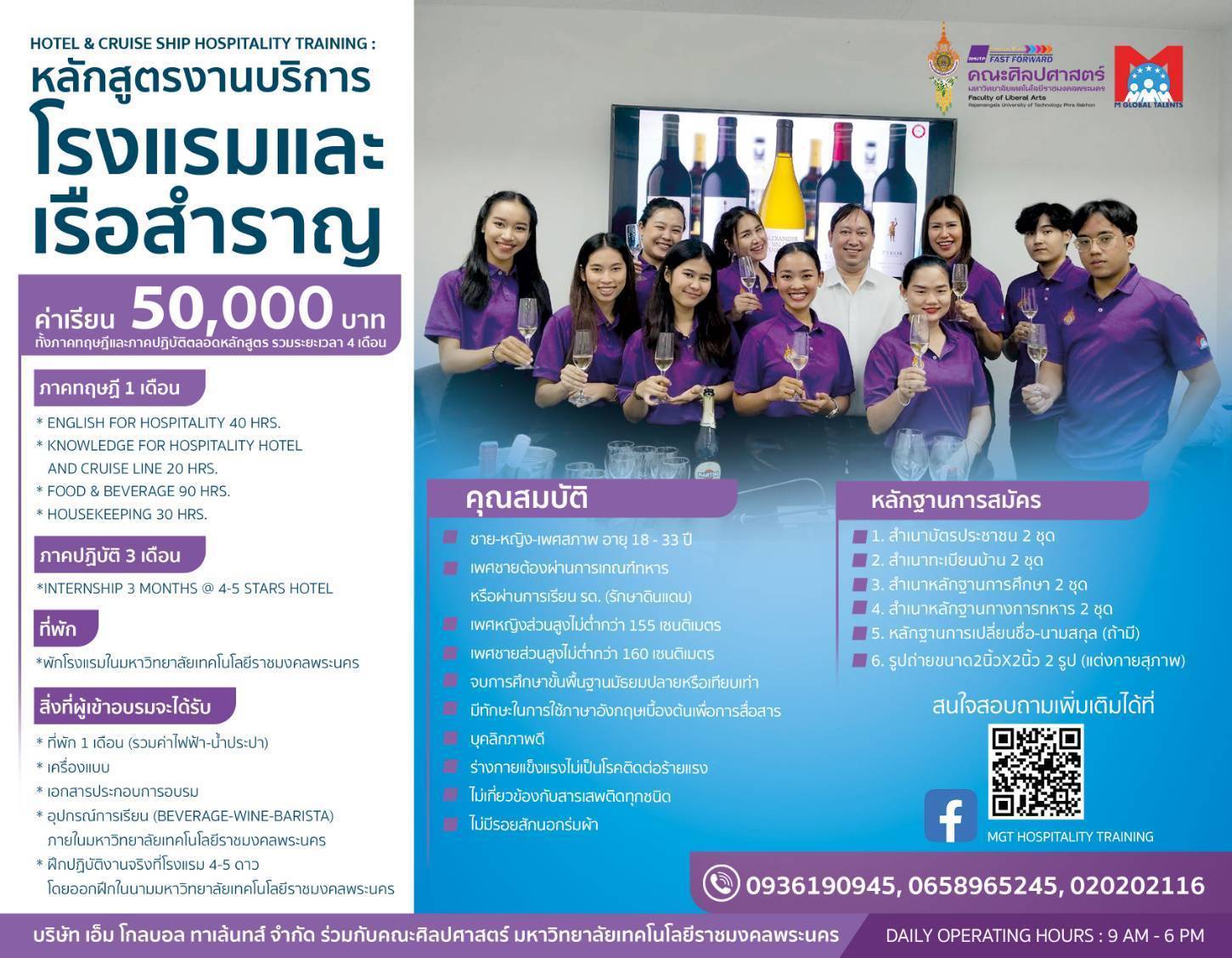 หลักสูตรพร้อมทำงาน สำหรับผู้ที่ต้องการทำงานบนเรือสำราญ และโรงแรมชั้นนำ รับประกาศนียบัตร และใบผ่านการฝึกงานโรงแรม พร้อมสิทธิ์ประโยชน์มากมาย